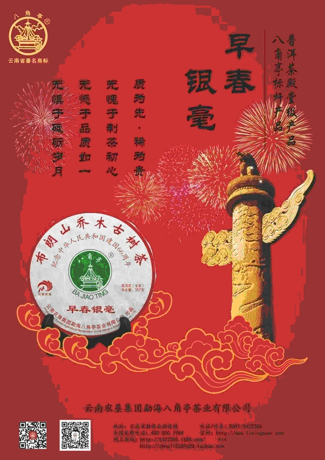 八角亭常规品之一,普洱茶殿堂级产品,八角亭普洱生茶标杆产品,布朗山乔木古树茶——建国66周年纪念版,产量较少,是一款极具收藏价值的生茶。