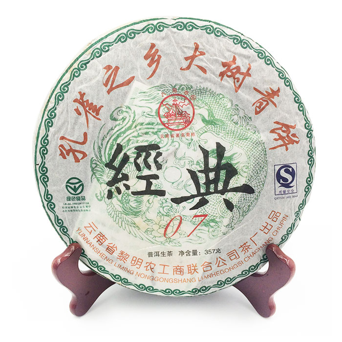 【类型】饼茶【工艺】生茶【规格】357克/饼 7饼/桶 6桶/件【日期】2007年【厂家】云南省黎明农工商联合公司茶厂【环境】清洁、通风、阴凉、干燥、避光的条件下【期限】在干燥无污染的环境中适合长期保存